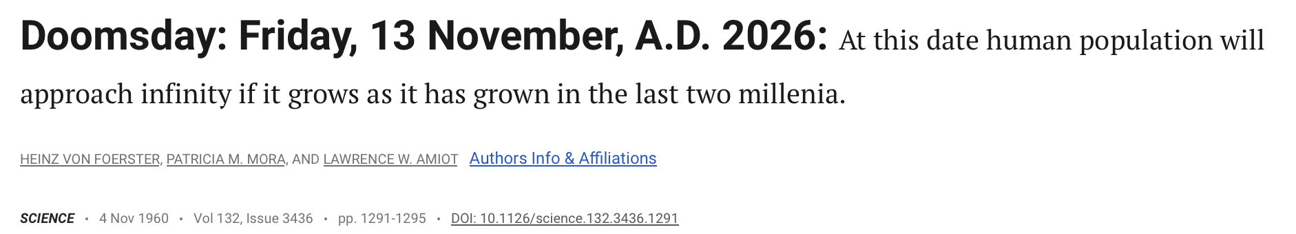 Von Foersters et al. (1960) used the following function to describe the increase in human population over time: