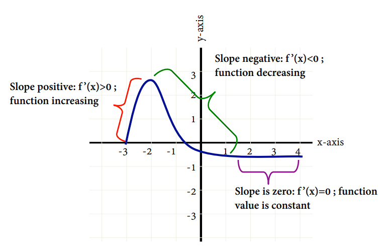 If \(f'(x)<0\) for all \(x\) values betwen \(a\) and \(b\), then \(f(x)\) is decreasing on \((a,b)\)