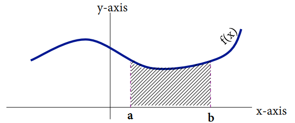 \[ \begin{align} \int^b_axdx &= \frac{1}{2}x^2\Big|^b_a\\ &= \frac{1}{2}(b)^2-\frac{1}{2}(a)^2 \end{align} \]