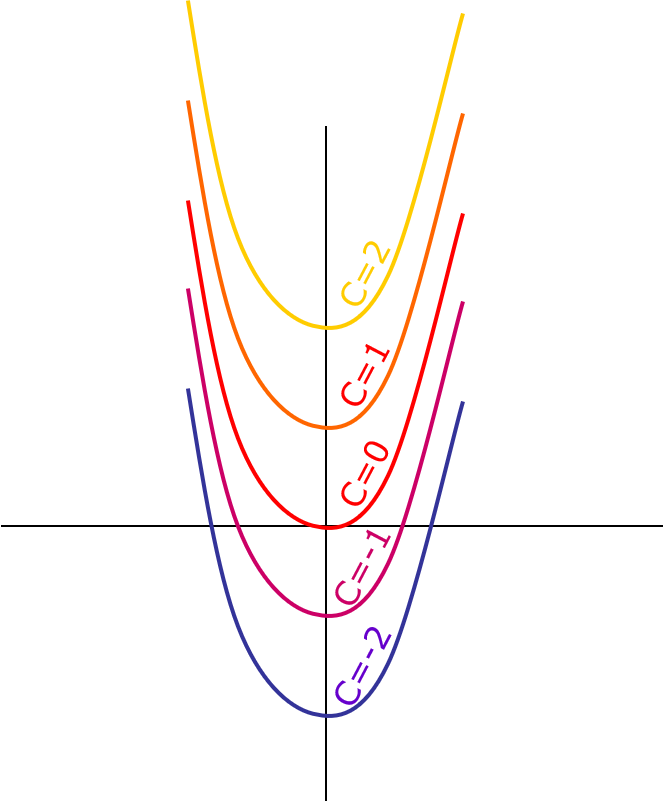If we integrate, we’ll have \(\int 2x-4 = x^2-4x+C\).